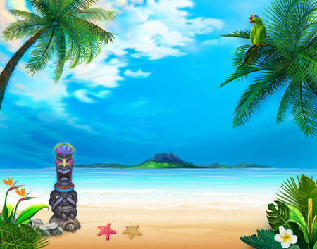 面白い神と緑の鸚鵡ハワイアン風景 壁紙 カード ゲームの背景として画像を使用できます の写真素材 画像素材 Image